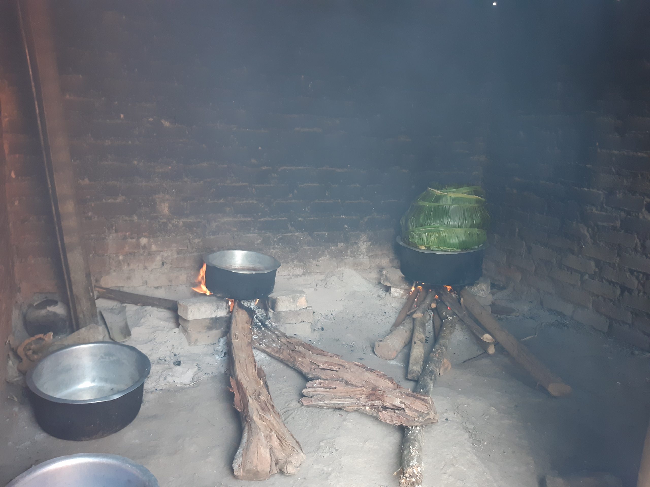 Zum Kochen wird ein moderner Effizienzofen eingesetzt, der zusammen mit dem 2019 verstorbenen Prof. Dr. Musatsi von der Universität Kampala entwickelt wurde. Ein Ofen der den Rauch an die Außenluft abgibt und der auf Grund seiner Bauart weniger Holz benötigt.
